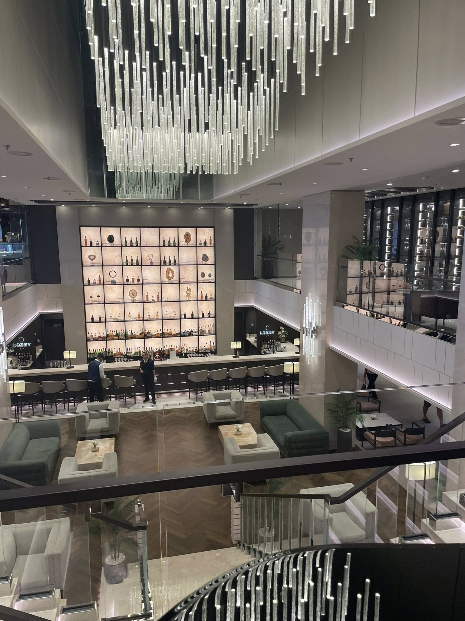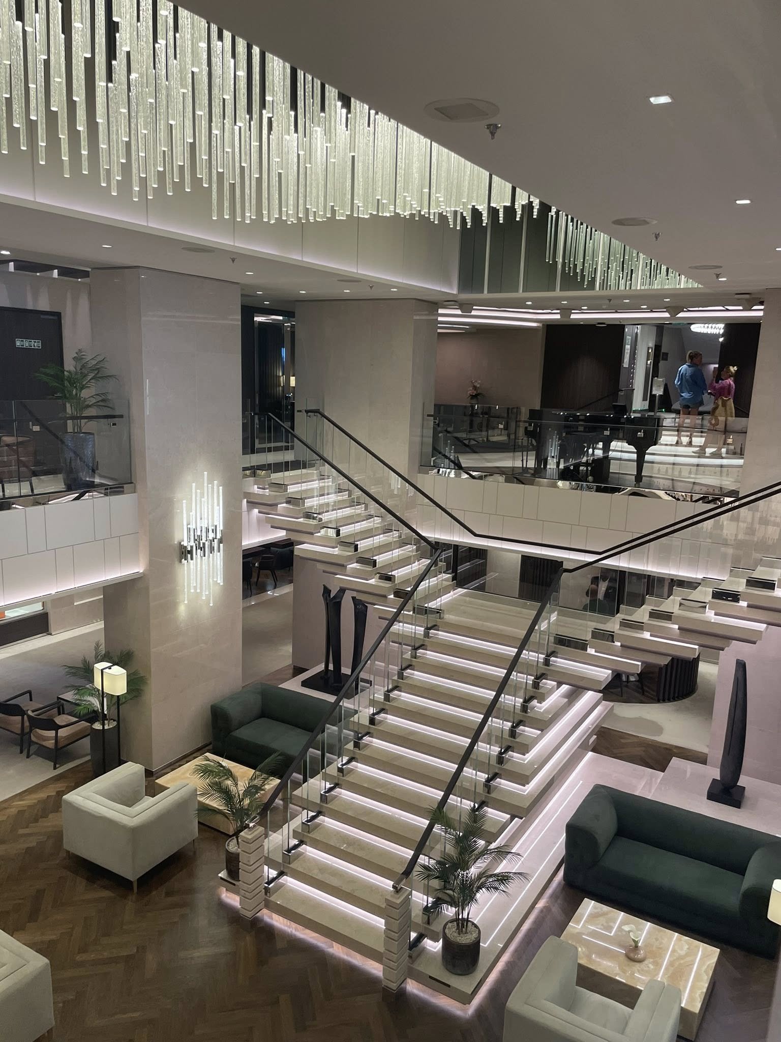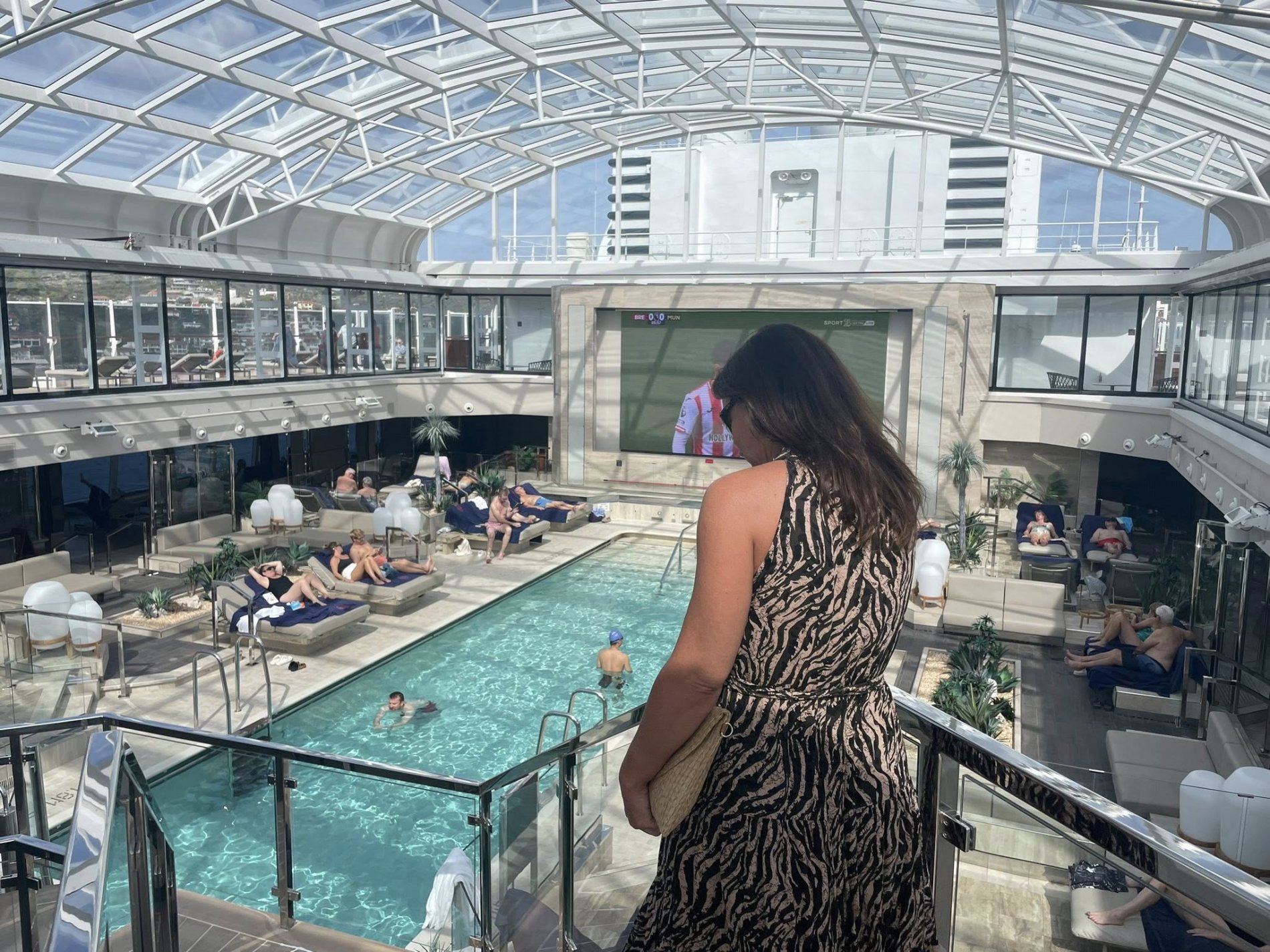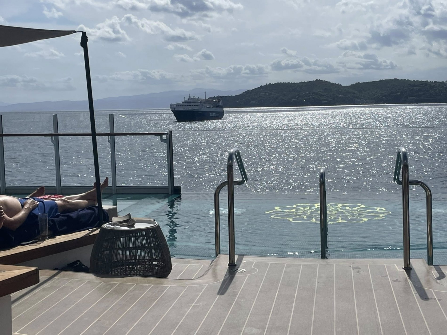 Ξενάγηση στο κρουαζιερόπλοιο Explora Journeys 1, από την Eva Mikulkova Destination Manager της εταιρείας, η οποία συμμετείχε στο ταξίδι εξοικείωσης που διοργάνωσε η Περιφέρεια με την Υποστήριξη του Δήμου.