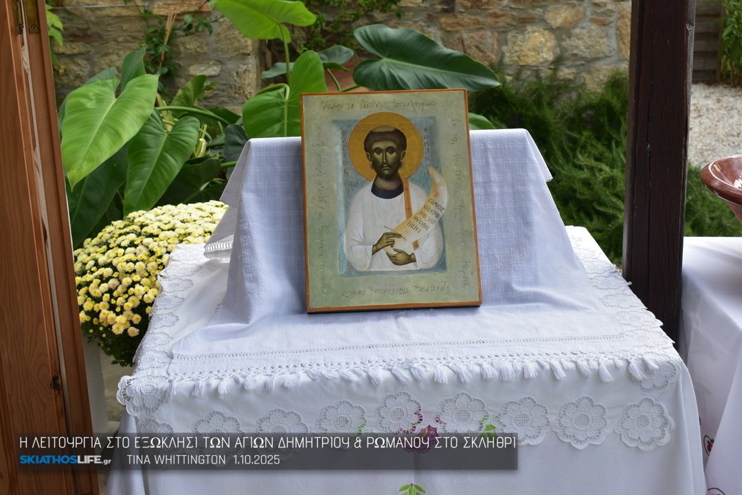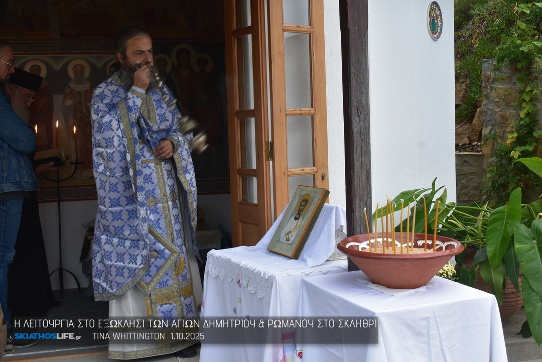 Την 1η του μηνός Οκτωβρίου γιορτάζει ο Άγιος Ρωμανός ο Μελωδός. Όπως κάθε χρόνο, έτσι και φέτος, τιμήθηκε ο Αγιος με λειτουργία στο μικρό εκκλησάκι που είναι αφιερωμένο στους Αγίους Δημήτριο τον Μυροβλύτη και Ρωμανό τον Μελωδό. Ανήκει στην ιδιοκτησία της οικογένειας Γιάννη & Μαρίας Τσιώμου και στη δικαιοδοσία του Μητροπολιτικού Ναού Τριών Ιεραρχών Σκιάθου