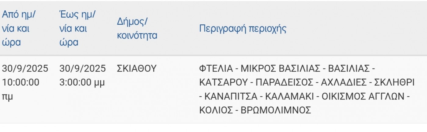 ΔΕΔΔΗΕ - Προγραμματισμένη διακοπή ρεύματος αύριο στη Σκιάθο | δείτε περιοχές και διάρκεια