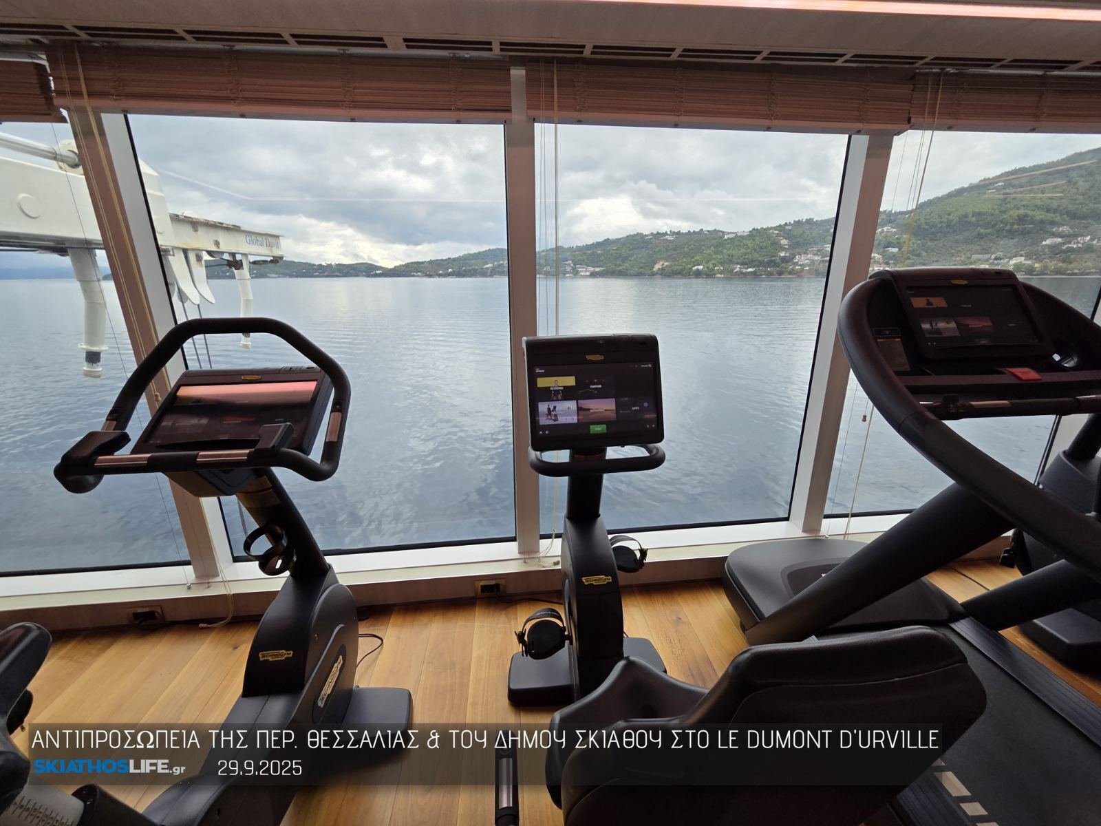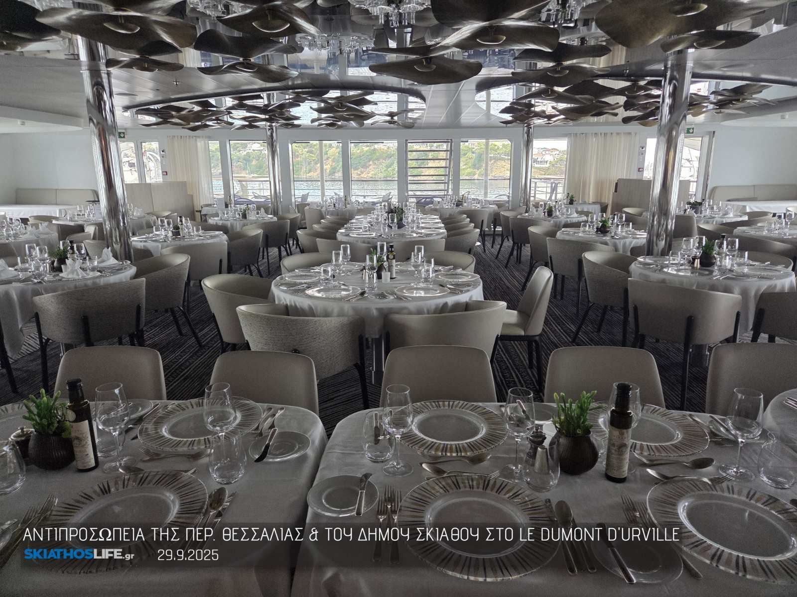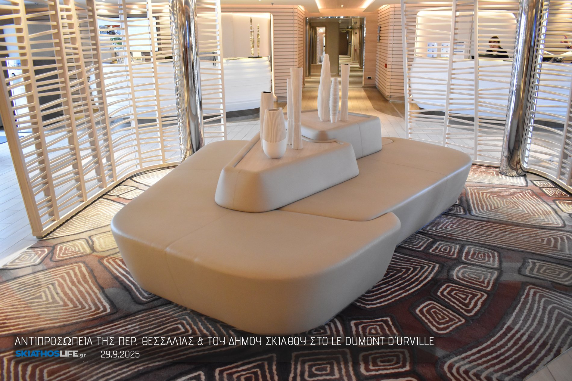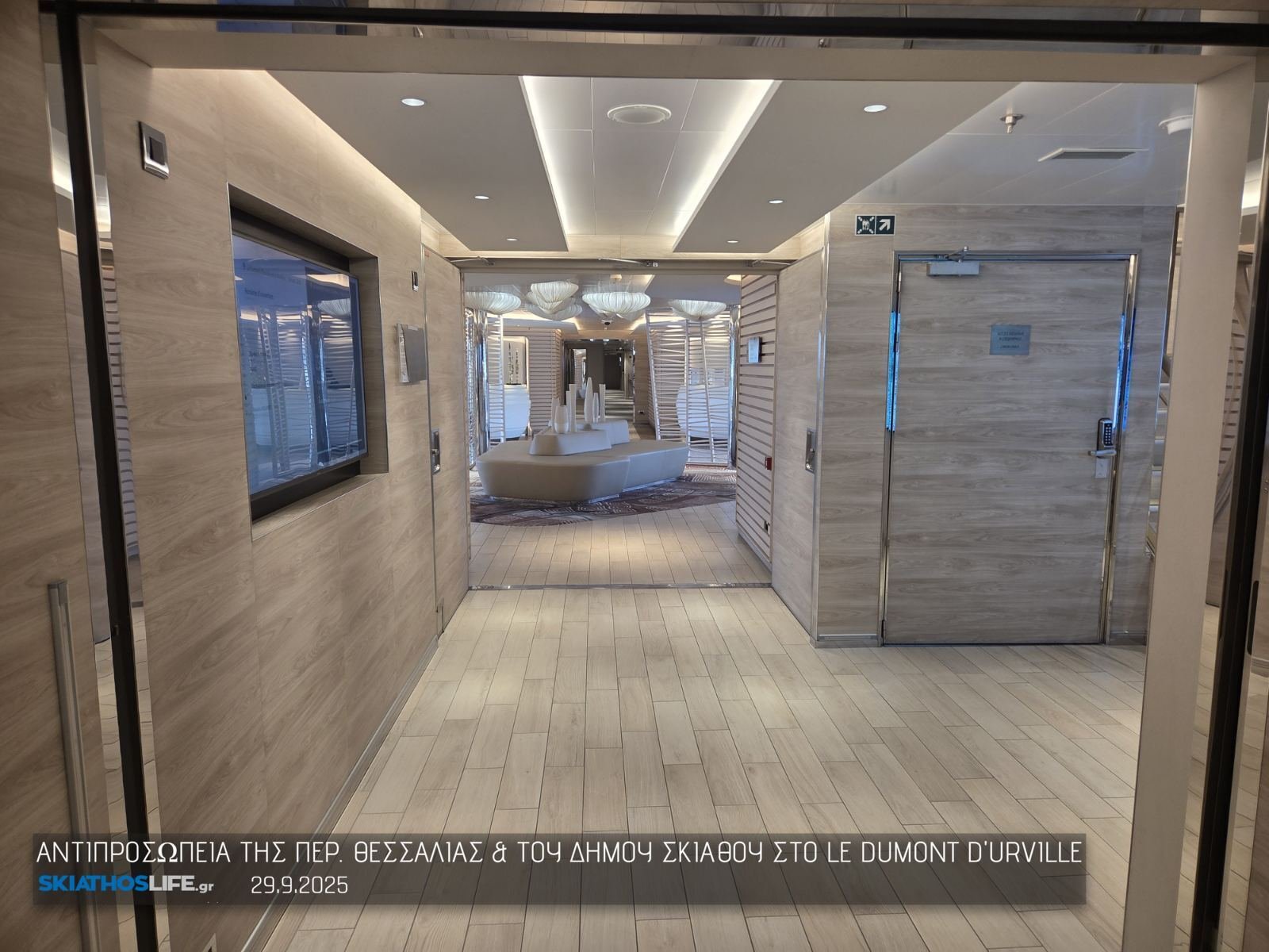 Αντιπροσωπεία της Περιφέρειας Θεσσαλίας με την Εντεταλμένη Περιφερειακή Σύμβουλο Β. Σποράδων κα Αμαλία Γραββάνη και του Δήμου Σκιάθου παρουσία του Δημάρχου Θοδωρή Τζούμα, του Προέδρου του Δημοτικού Λιμενικού Ταμείου κ. Γιώργου Διολέττα βρέθηκαν στο κρουαζιερόπλοιο Le Dumont-d’Urville, όπου είχαν εποικοδομητική συνάντηση με εκπρόσωπο της εταιρίας, τον Πλοίαρχο του πλοίου παρουσία του εκπροσώπου του Πρακτορείου Vanda Travel κ. Σπύρου Μιχούδη.