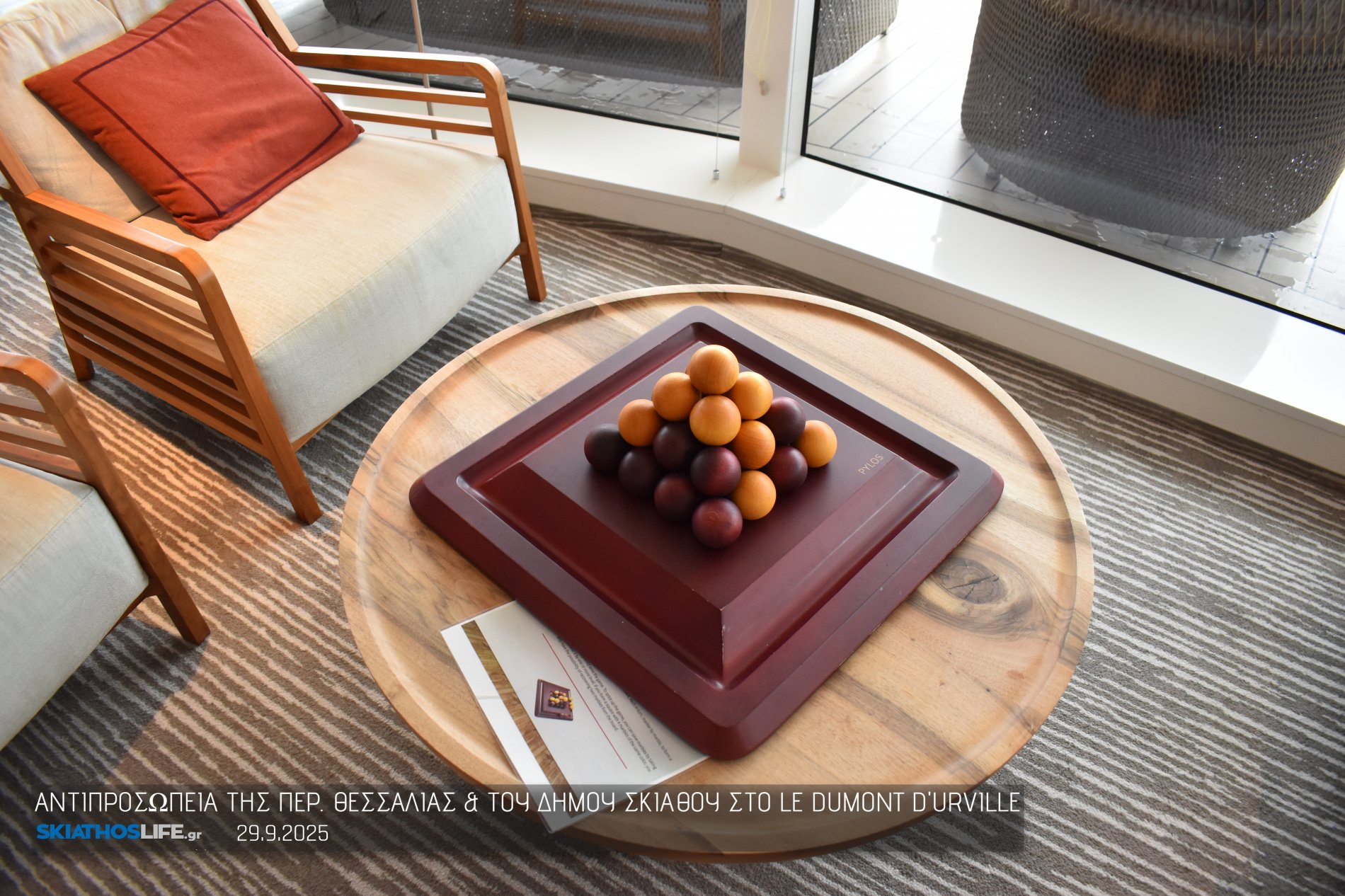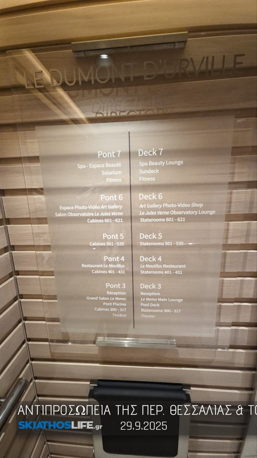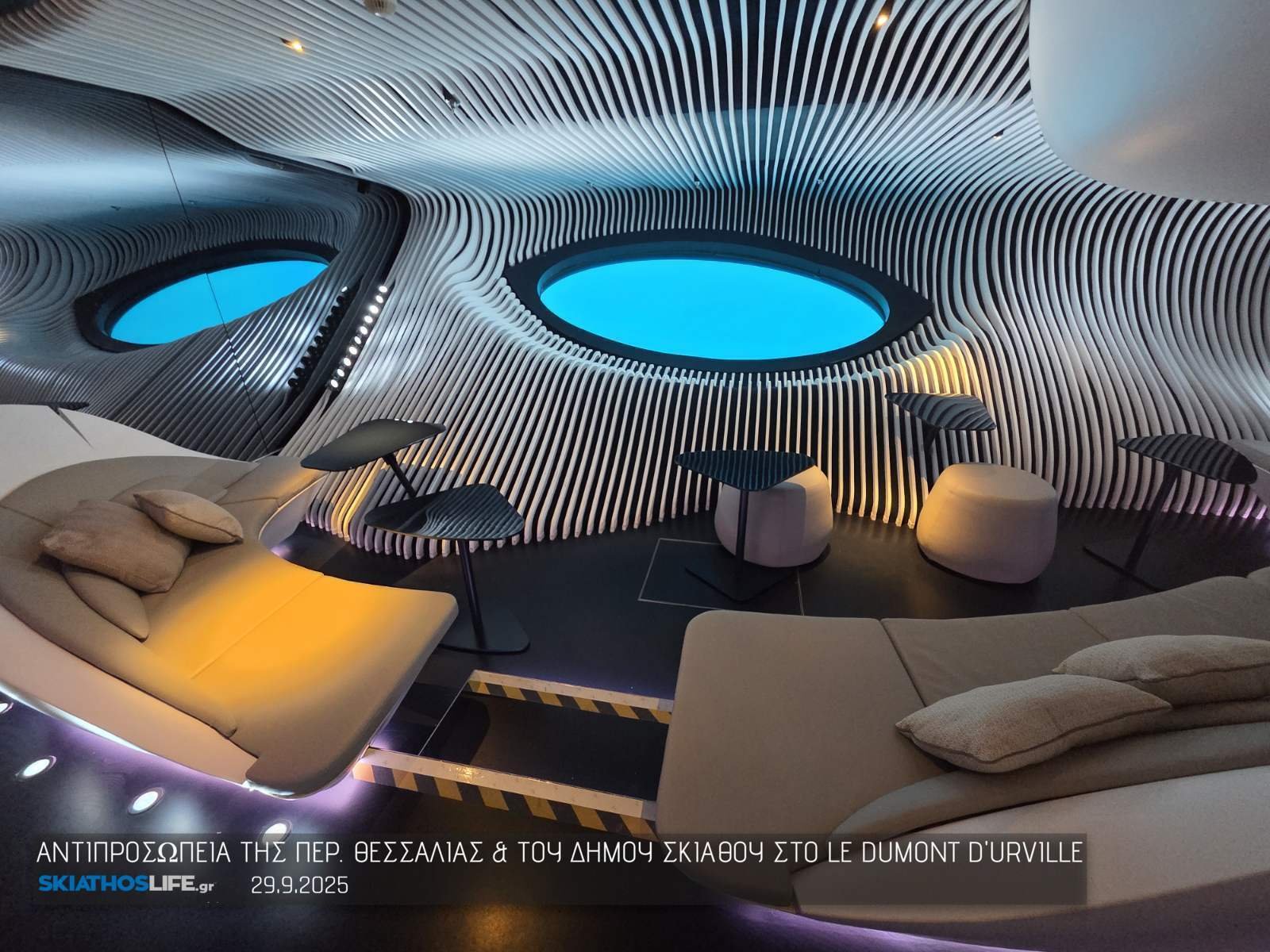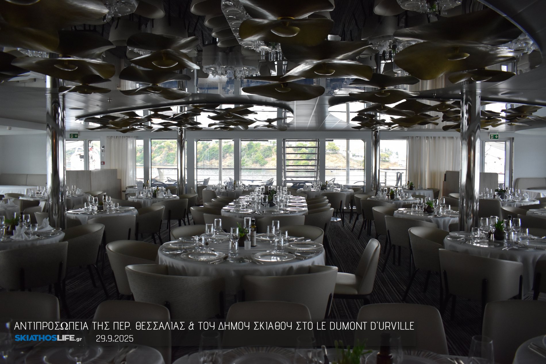 Αντιπροσωπεία της Περιφέρειας Θεσσαλίας με την Εντεταλμένη Περιφερειακή Σύμβουλο Β. Σποράδων κα Αμαλία Γραββάνη και του Δήμου Σκιάθου παρουσία του Δημάρχου Θοδωρή Τζούμα, του Προέδρου του Δημοτικού Λιμενικού Ταμείου κ. Γιώργου Διολέττα βρέθηκαν στο κρουαζιερόπλοιο Le Dumont-d’Urville, όπου είχαν εποικοδομητική συνάντηση με εκπρόσωπο της εταιρίας, τον Πλοίαρχο του πλοίου παρουσία του εκπροσώπου του Πρακτορείου Vanda Travel κ. Σπύρου Μιχούδη.