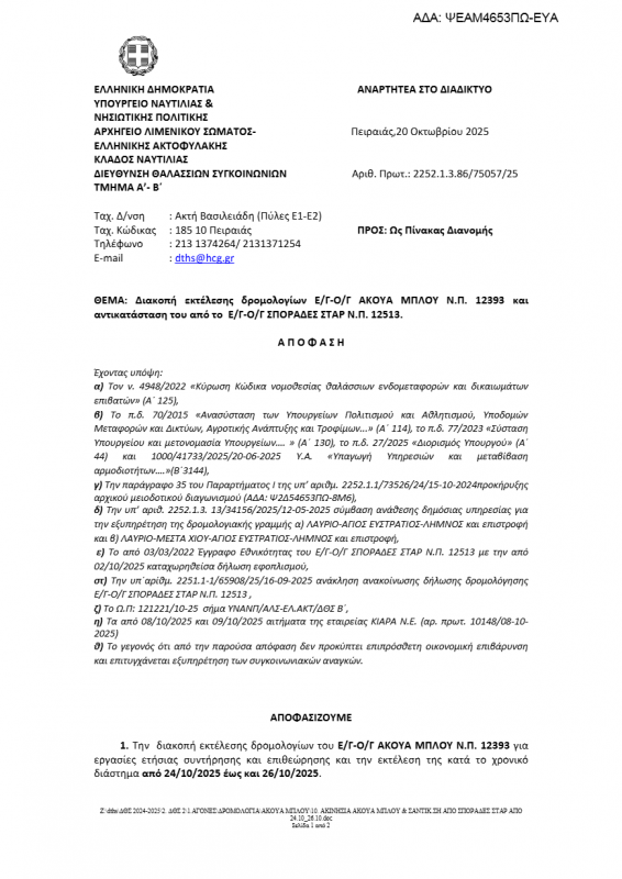 ΘΕΣΣΑΛΙΑΣΠΟΡΑΔΕΣ Επανέρχεται στην ενεργό δράση το SPORADES STAR αντικαθιστώντας το AQUA BLUE το χρονικό διάστημα 24/10-26/10 2025-10-23 07:35:04 Επανέρχεται στην ενεργό δράση το SPORADES STAR αντικαθιστώντας το AQUA BLUE το χρονικό διάστημα 24/10-26/10 ΡΟΗ ΕΙΔΗΣΕΩΝ ΣΠΟΡΑΔΕΣ 23/10/2025 | 12:25:45 "Βιάστηκε ο Σπύρος" ... ΕΛΛΑΔΑ 23/10/2025 | 12:15:48 Η ΕΡΤ στο Βελούχι στο πρότυπο βιωματικό εργαστήριο κατασκευής Σαρακατσάνικου Κονακιού ΟΡΘΟΔΟΞΙΑ 23/10/2025 | 12:07:27 Η γοητεία του εισαγόμενου | Γράφει ο π. Παντελεήμων Χούλης ΣΠΟΡΑΔΕΣ 23/10/2025 | 12:01:19 Διενέργεια δολωματικών ψεκασμών για την καταπολέμηση του δάκου της ελιάς σε ελαιοκομικές περιοχές της Σκοπέλου ΣΠΟΡΑΔΕΣ 23/10/2025 | 11:49:14 Ορκίστηκε Δημοτικός Σύμβουλος Σκιάθου ο Αθανάσιος Ζλατούδης (φωτο) | Δηλώσεις στο Skiathoslife.gr