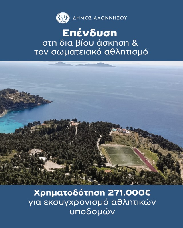 Ο Δήμος Αλοννήσου επενδύει στη δια βίου άσκηση, στηρίζει τον σωματειακό αθλητισμό και δημιουργεί χώρους που ανήκουν σε όλους – μικρούς και μεγάλους!