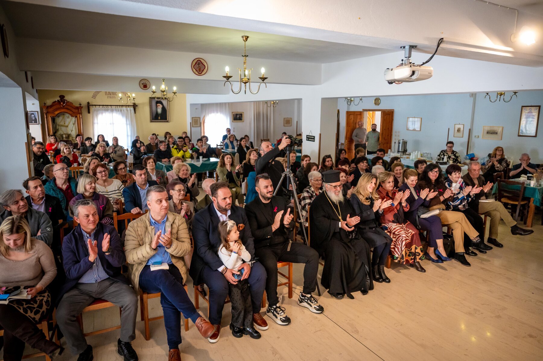 Η εκδήλωση που διοργάνωσαν ο Δήμος Αγιάς, ο Σύλλογος Γυναικών Αγιάς, ο Σύλλογος Καρκινοπαθών και το τοπικό βιβλιοπωλείο «Άρτιον» με την υποστήριξη από την Αρχιερατική Περιφέρεια Αγιάς, άνοιξε με χαιρετισμό του Αρχιερατικού Επιτρόπου, πρωτοπρεσβύτερου π. Αθανάσιου Μακρή, ο οποίος, μεταφέροντας και τις θερμές ευχές του Σεβασμιότατου Μητροπολίτη Δημητριάδος και Αγιάς κ. Ιγνατίου.