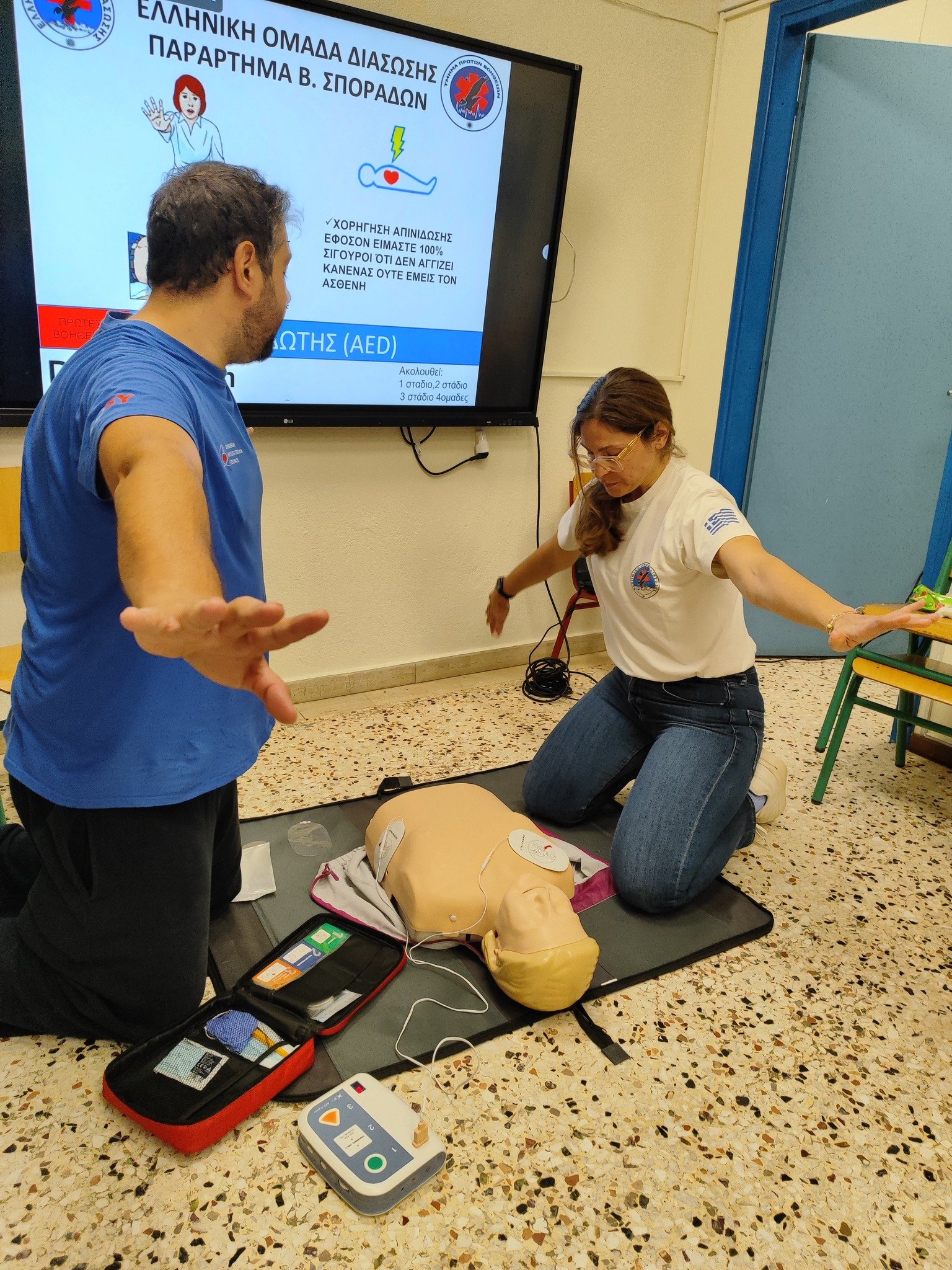 Στο πλαίσιο της διαρκούς επιμόρφωσης των εκπαιδευτικών, το Ειδικό Δημοτικό Σχολείο Σκιάθου, σε συνεργασία με το 1ο Δημοτικό Σχολείο Σκιάθου, πραγματοποίησε ένα ιδιαίτερα σημαντικό και ουσιαστικό Σεμινάριο Πρώτων Βοηθειών, με εκπαιδευτές από την Ελληνική Ομάδα Διάσωσης Βορείων Σποράδων.