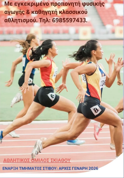 Καλούνται όλα τα παιδιά και οι νέοι του νησιού να γνωρίσουν τον στίβο, να ενταχθούν στην αθλητική οικογένεια του Α.Ο. Σκιάθου και να προπονηθούν σε ένα οργανωμένο και ασφαλές περιβάλλον.