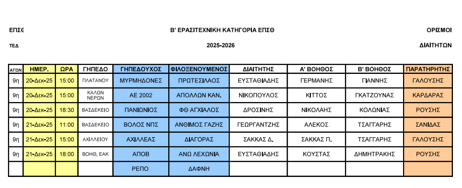 Τέλος ο ΑΟ Σκιάθου Β` αγωνίζεται το Σάββατο 20 Δεκεμβρίου στις 19.00 στο Βοηθητικό του ΕΑΚ με διαιτητή τον Πανανό και βοηθούς το δίδυμο Πατσιαούρας - Κράλλης