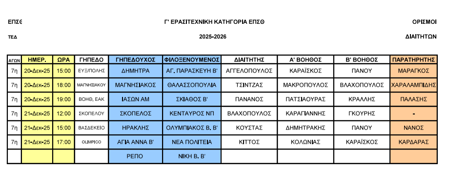 Για την Γ` ΕΠΣΘ τα Θαλασσοπούλια αγωνίζονται στο Γήπεδο του Μαγνησιακού με την αντίστοιχη ομάδα το Σάββατο 20 Δεκεμβρίου στις 18:00 με διαιτητή τον Τσιντζά και βοηθούς το δίδυμο Μακρόπουλο - Βλαχόπουλο.