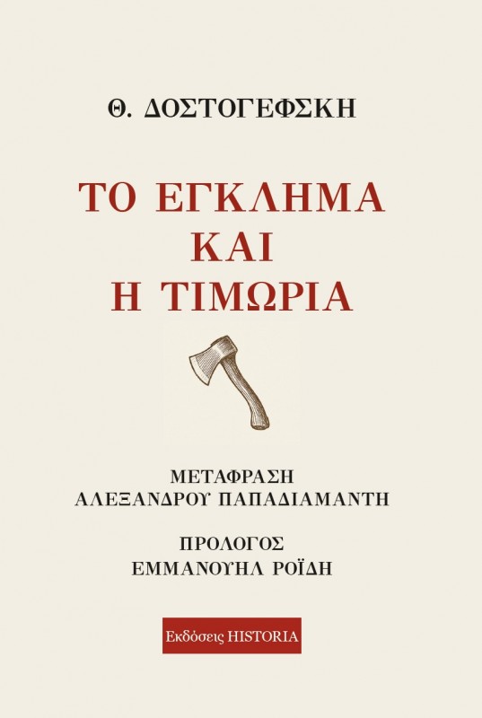 Οι Εκδόσεις Historia παρουσιάζουν μια ξεχωριστή, ιστορικής σημασίας έκδοση του κλασικού αριστουργήματος του Ντοστογιέφκσι Το Έγκλημα και η Τιμωρία, σε μετάφραση Αλέξανδρου Παπαδιαμάντη. Ο φοιτητής Ρασκόλνικωφ, έχοντας σχηματίσει την ιδέα ότι ανήκει στους λίγους εκλεκτούς που έχουν το δικαίωμα να υπερβαίνουν τον νόμο, διαπράττει ένα φρικτό έγκλημα. Ο κορυφαίος ψυχογράφος Ντοστογιέφσκι παρακολουθεί με συγκλονιστική οξυδέρκεια την πορεία του ήρωά του από την ύβρη στην παραδοχή της ενοχής και από την εσωτερική διάλυση στην αναζήτηση της λύτρωσης.