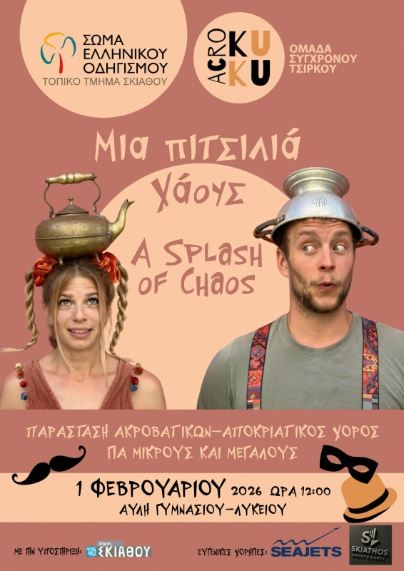 Την Κυριακή 1 Φεβρουαρίου 2026, στις 12:00 το μεσημέρι, στο Αύλειο Γυμνασίου – Λυκείου Σκιάθου, παρουσιάζεται η αποκριάτικη παράσταση: