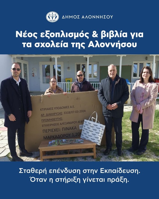 Την Τετάρτη 11 Φεβρουαρίου 2026 πραγματοποιήθηκε η παράδοση παιδαγωγικού υλικού και εξοπλισμού στο Νηπιαγωγείο Αλοννήσου από την ΚΤΥΠ Α.Ε., παρουσία του Δημάρχου και εκπροσώπων της δημοτικής αρχής.