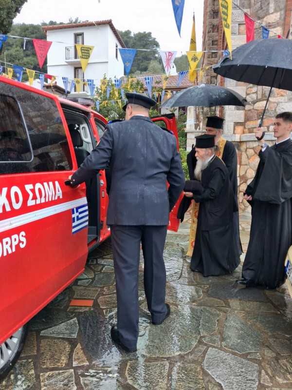 Το ιερό λείψανο μεταφέρθηκε στο ναό του Χριστού με όχημα της πυροσβεστικής.
