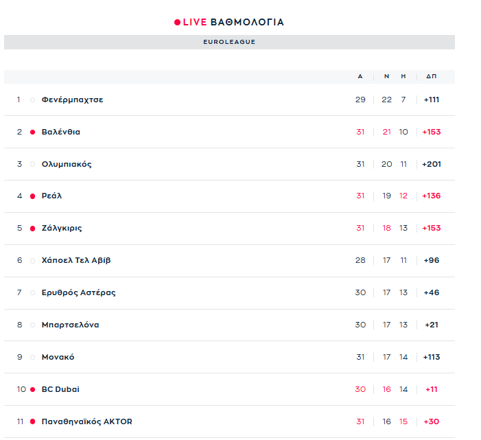 Η βαθμολογία της EuroLeague: Ο Ολυμπιακός αδίκησε τον εαυτό του και θα πιεστεί για την τετράδα