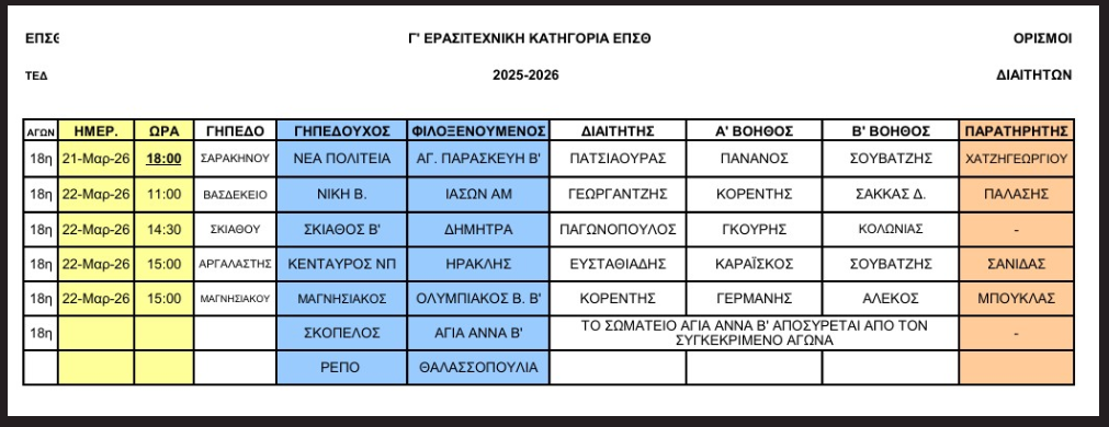 ΑΘΛΗΤΙΣΜΟΣ Αυτοί σφυρίζουν τους αγώνες ποδοσφαίρου των ομάδων των Β. Σποράδων 2026-03-20 18:17:28 ΡΟΗ ΕΙΔΗΣΕΩΝ ΣΠΟΡΑΔΕΣ 27/04/2026 | 06:55:24 Για κίνδυνο ατυχήματος στην περιοχή Κεχριάς από την κατάσταση του δρόμου προειδοποιεί ο Δημ. Σύμβουλος Νίκος Γιαμαρέλος ΣΠΟΡΑΔΕΣ 27/04/2026 | 06:42:46 Η Σκόπελος και τα μυστικά 30 χρόνων- Τι αποκαλύπτεται για την εξαφάνιση της Ολυμπίας Κηρύκου (βίντεο) ΣΠΟΡΑΔΕΣ 27/04/2026 | 06:39:12 Στον Βόλο με το πλωτό ασθενοφόρο 57χρονος από την Σκόπελο – Εισήχθη στο Νοσοκομείο ΑΘΛΗΤΙΣΜΟΣ 27/04/2026 | 06:35:18 Πρωταθλητής Ελλάδος στο Muay Thai ο Μάνος Ραφτόπουλος του Α.Ο. Αλοννήσου ΠΟΛΙΤΙΣΜΟΣ 26/04/2026 | 20:11:14 "Τα Αγριόχορτα" | Καθηλωτική η παρουσίαση του Βιβλίου της Φωτεινής Μουρατίδου στη Σκιάθο