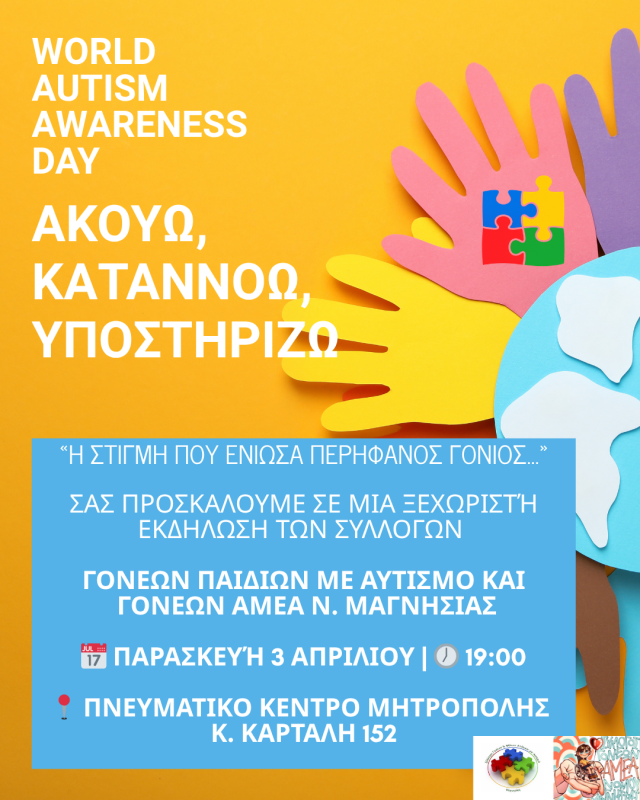 Με αφορμή την Παγκόσμια Ημέρα Αυτισμού, σας προσκαλούμε σε μια ξεχωριστή εκδήλωση αφιερωμένη στις ιστορίες των γονέων.