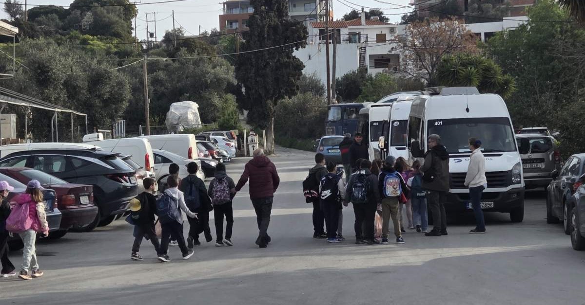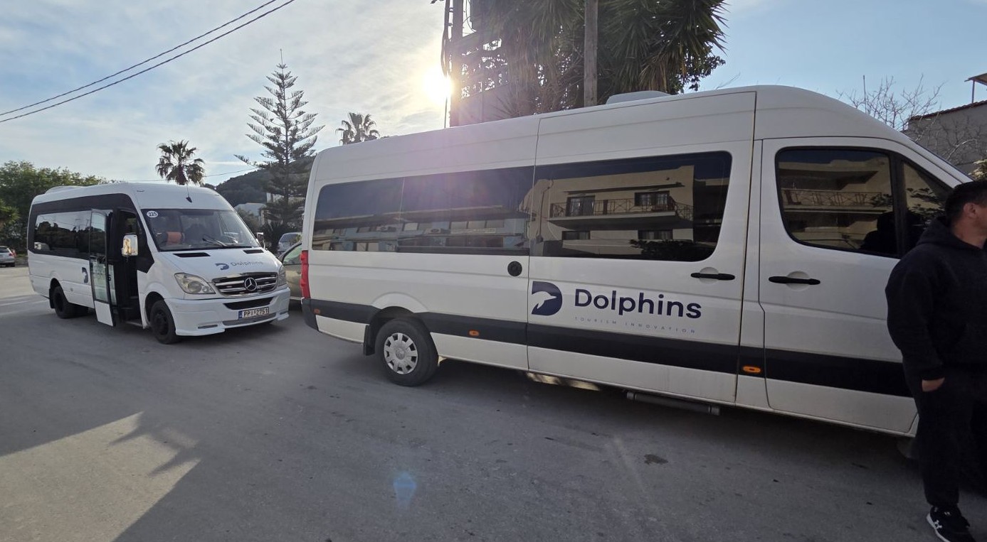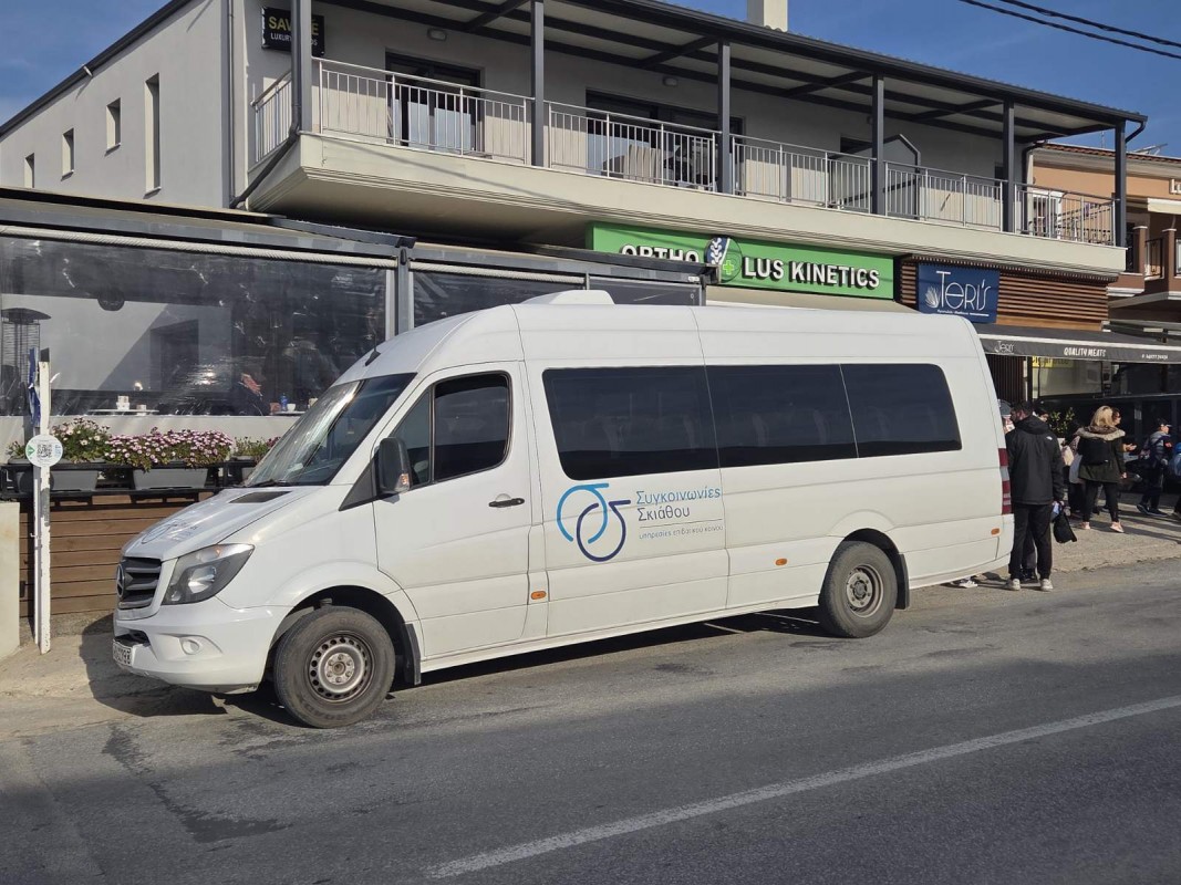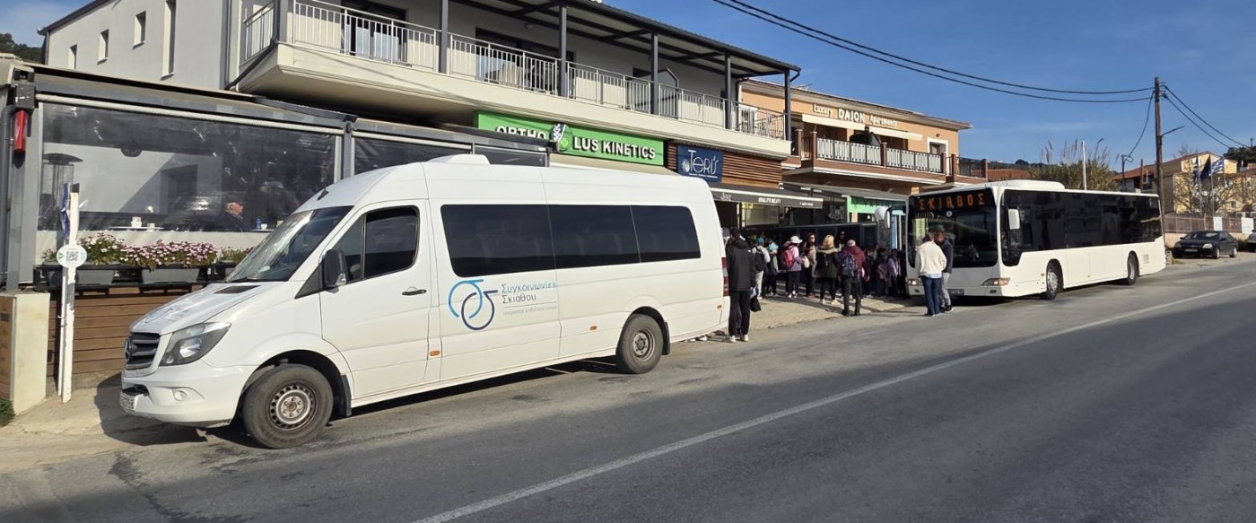 Για την μετακίνηση των μαθητών μας χρησιμοποιήθηκαν τρία λεωφορεία των Συγκοινωνιών Σκιάθου και τρία λεωφορεία της Dolphin of Skiathos!