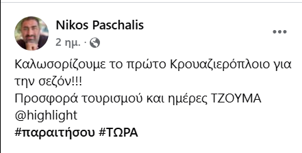 Σχόλιο της Αντιδημαρχίας Τουρισμού σε ψευδή ανάρτηση του επικεφαλής της αντιπολίτευσης, κ. Νίκου Πασχάλη 2026-04-23 07:49:47