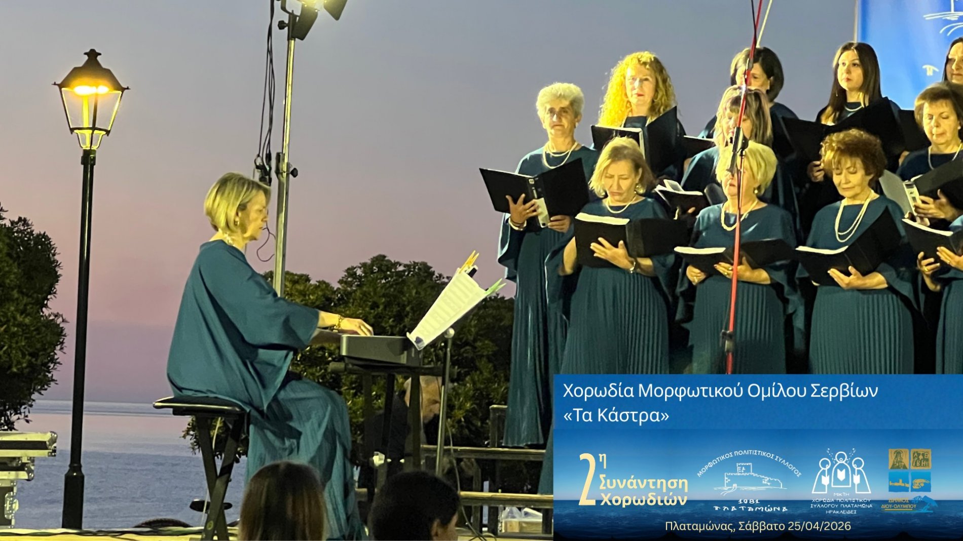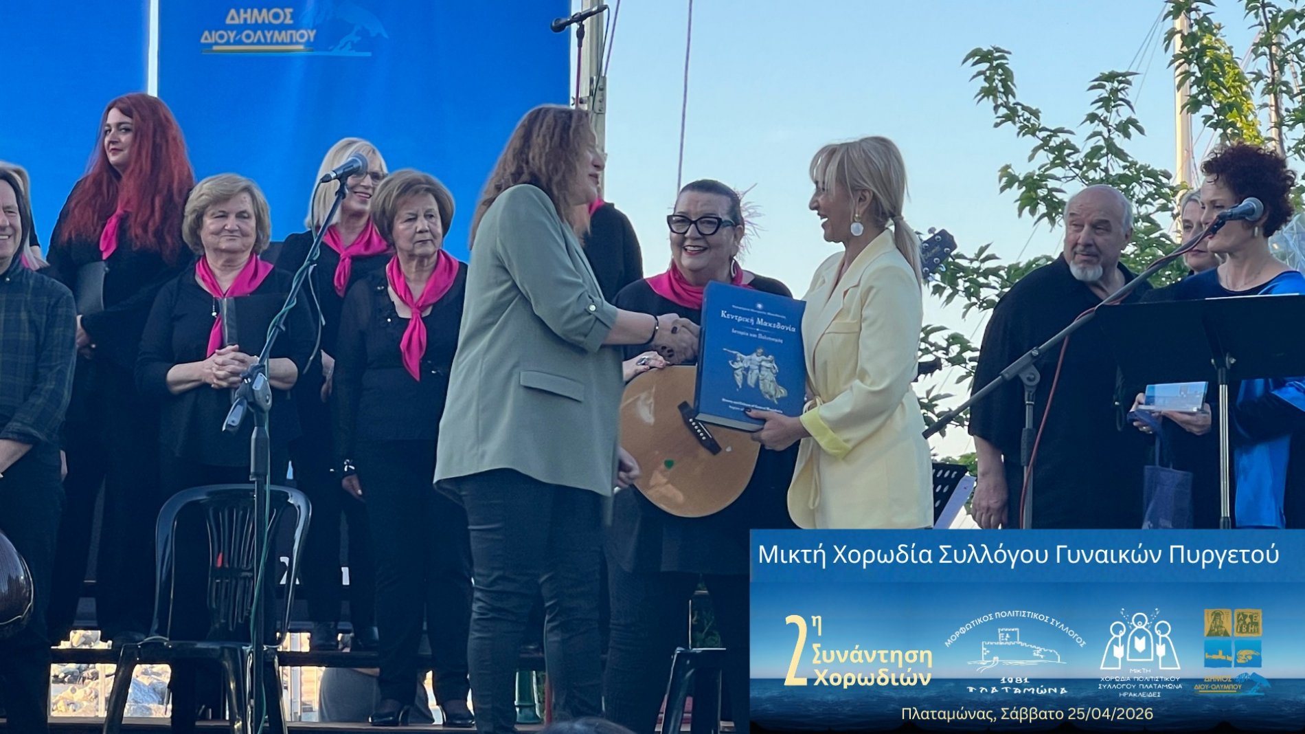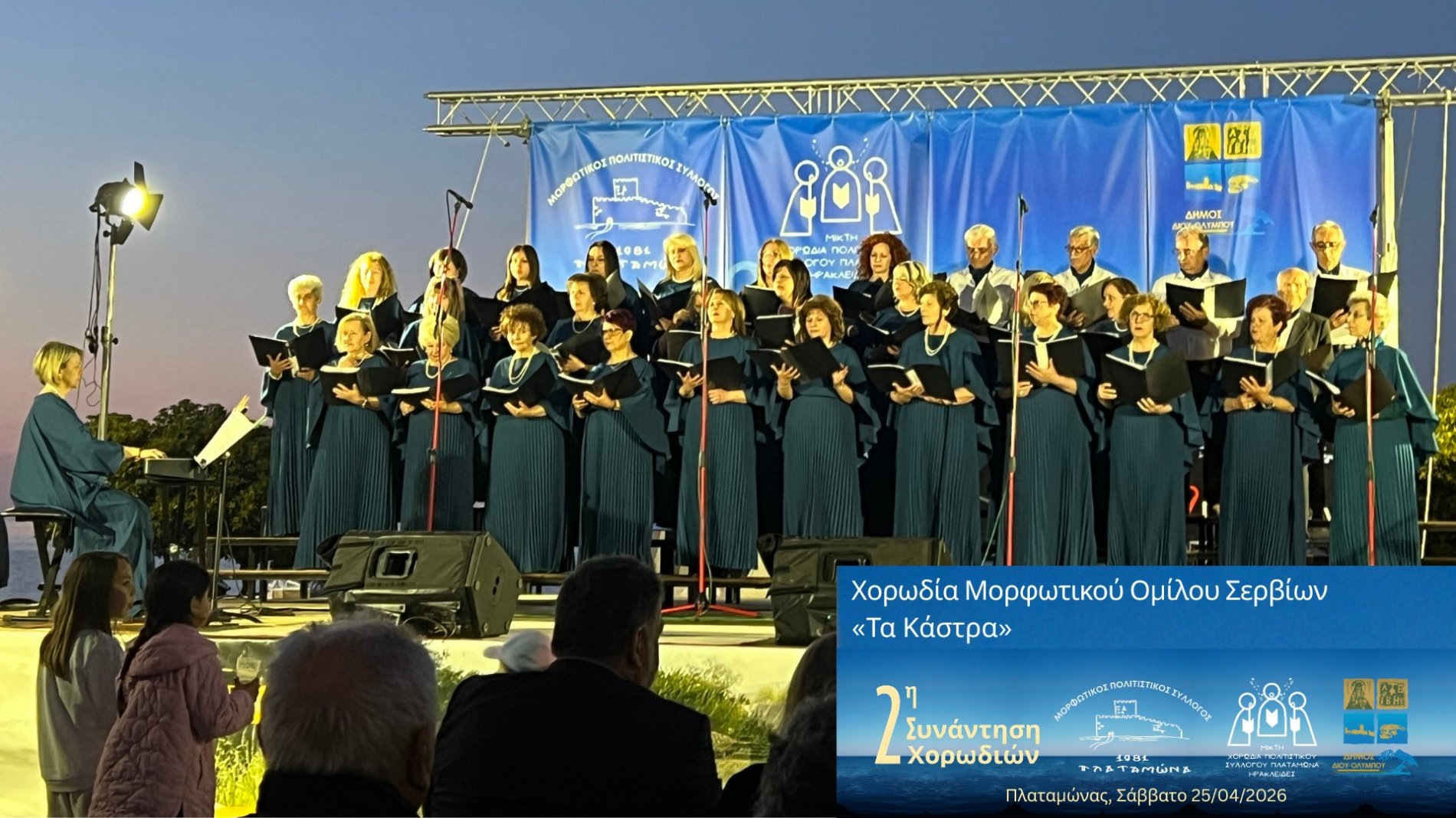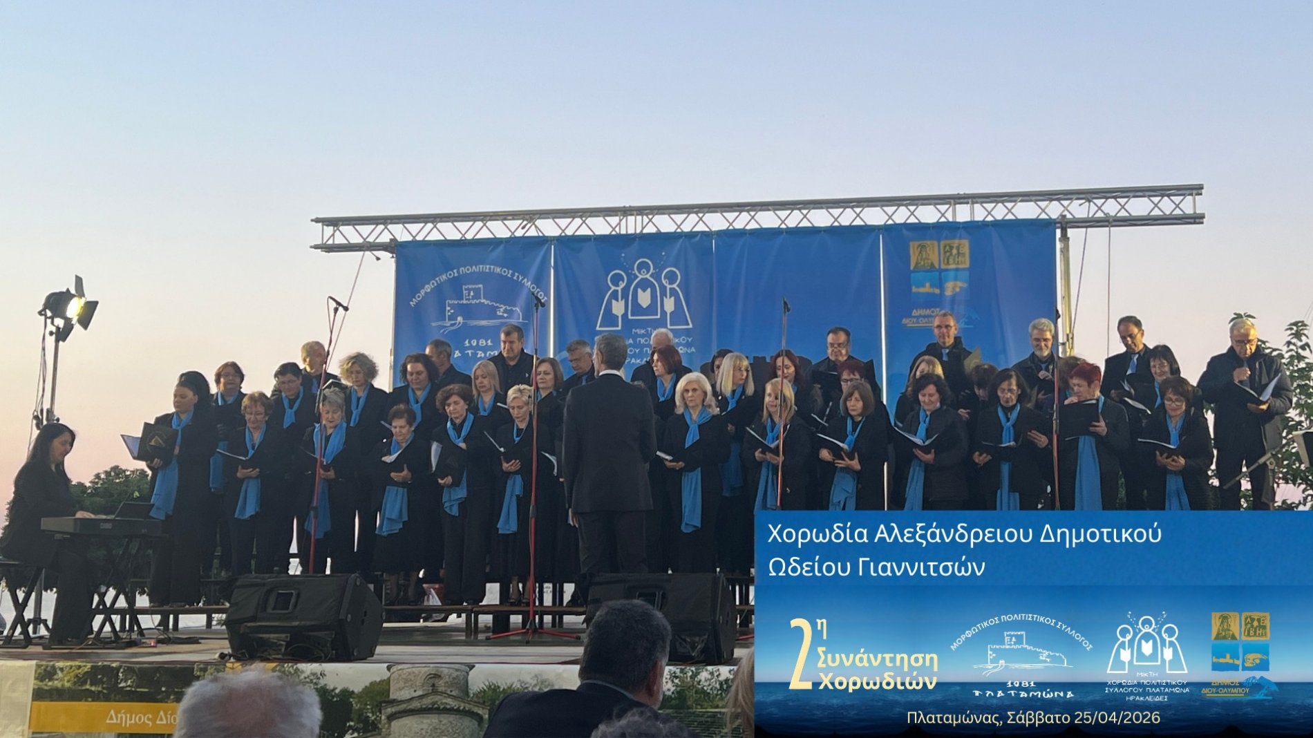 Εντυπωσίασαν το κοινό οι ερμηνείες των έξι χορωδιών που συμμετείχαν στη 2η Συνάντηση Χορωδιών Πλαταμώνα, η οποία διοργανώθηκε το Σάββατο 25 Απριλίου 2026, από τον Μορφωτικό Πολιτιστικό Σύλλογο Πλαταμώνα, τη Μικτή Χορωδία του Πολιτιστικού Συλλόγου Πλαταμώνα «Ηρακλείδες» και τον Δήμο Δίου-Ολύμπου.