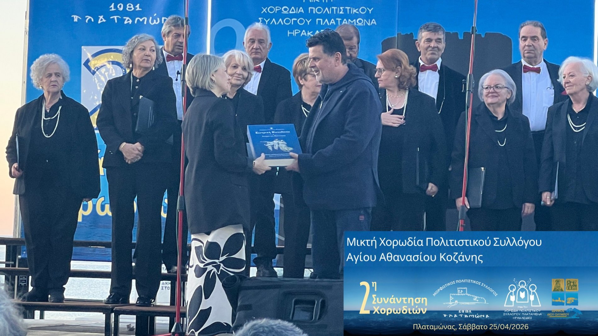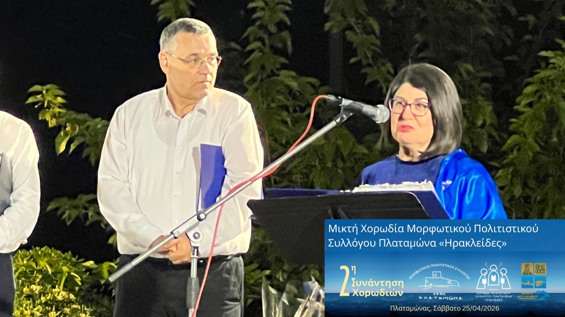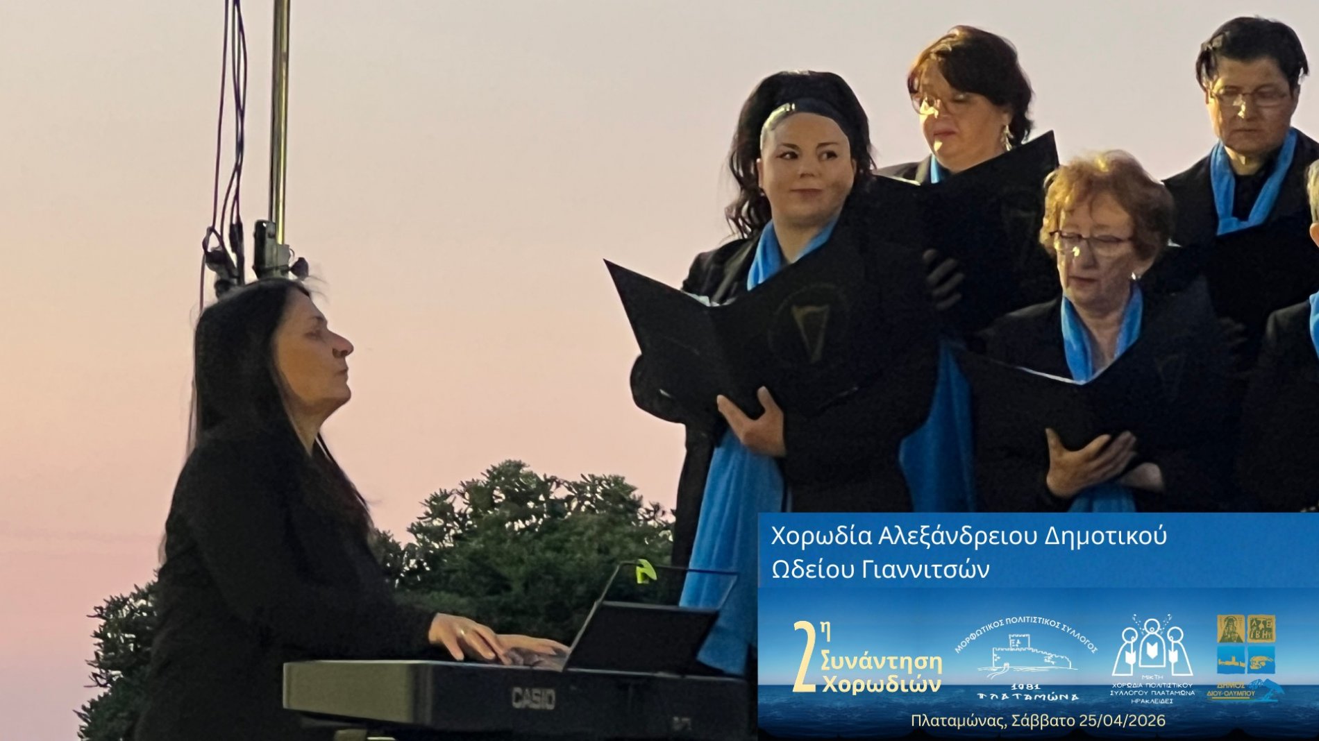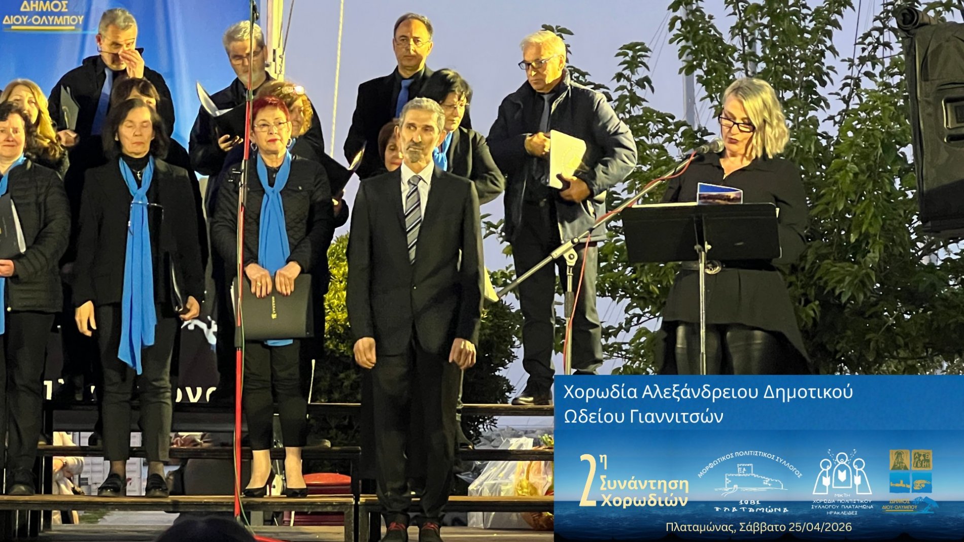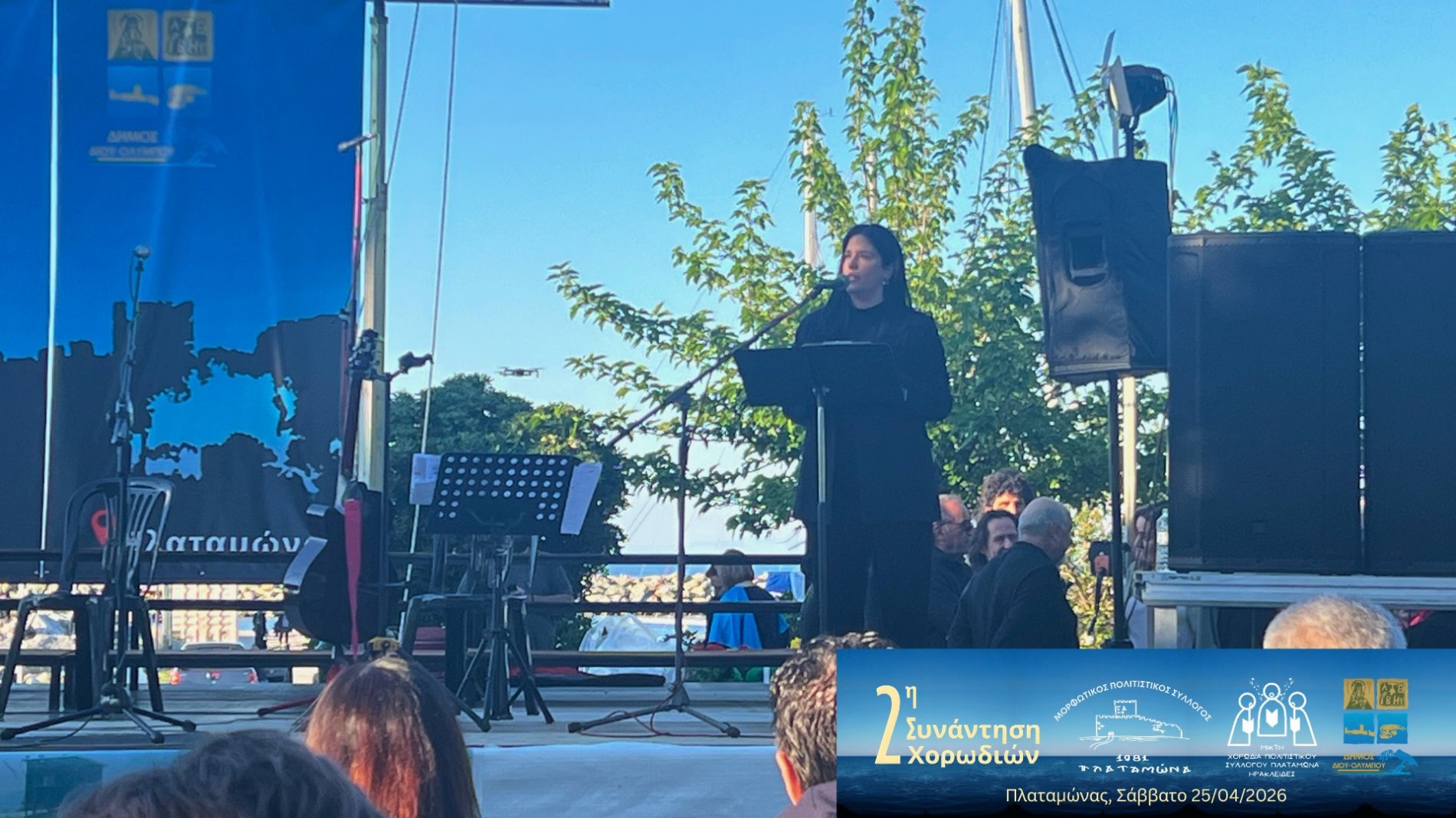 Εντυπωσίασαν το κοινό οι ερμηνείες των έξι χορωδιών που συμμετείχαν στη 2η Συνάντηση Χορωδιών Πλαταμώνα, η οποία διοργανώθηκε το Σάββατο 25 Απριλίου 2026, από τον Μορφωτικό Πολιτιστικό Σύλλογο Πλαταμώνα, τη Μικτή Χορωδία του Πολιτιστικού Συλλόγου Πλαταμώνα «Ηρακλείδες» και τον Δήμο Δίου-Ολύμπου.