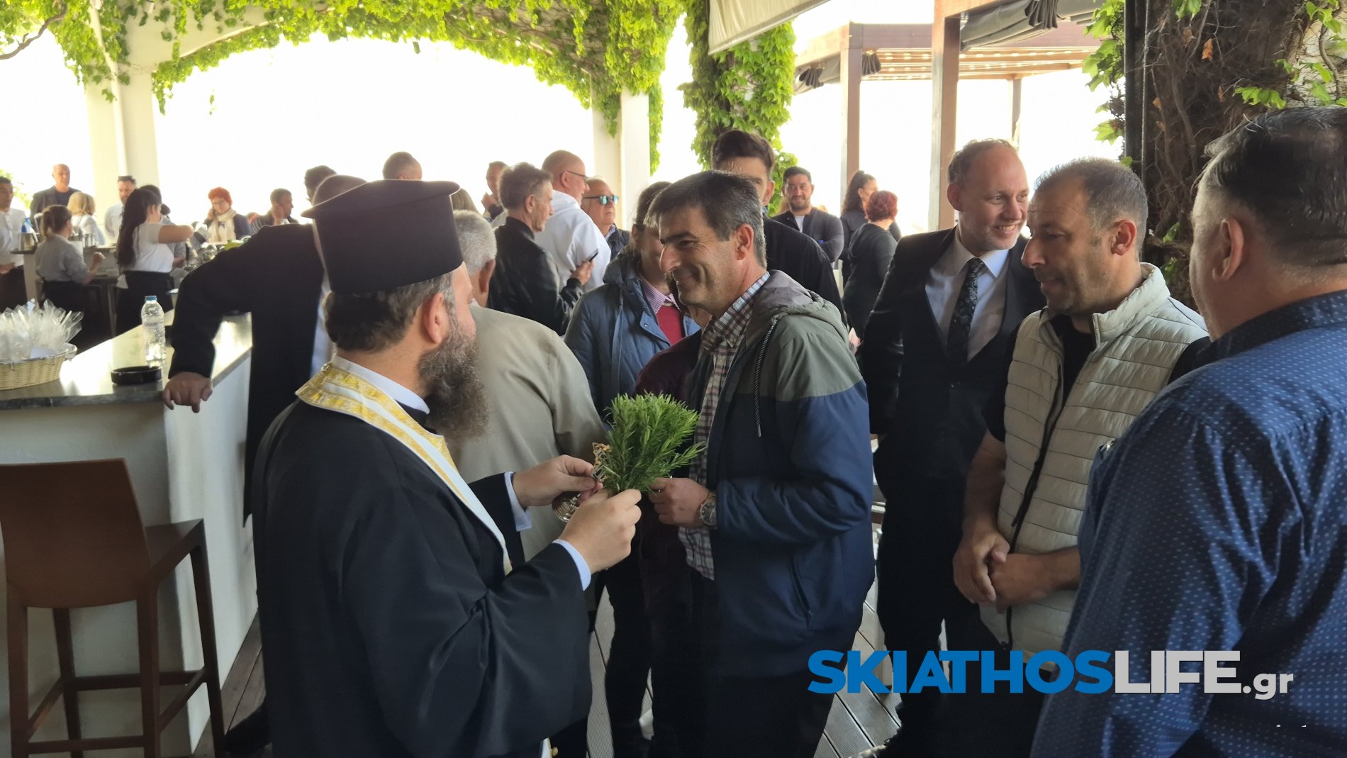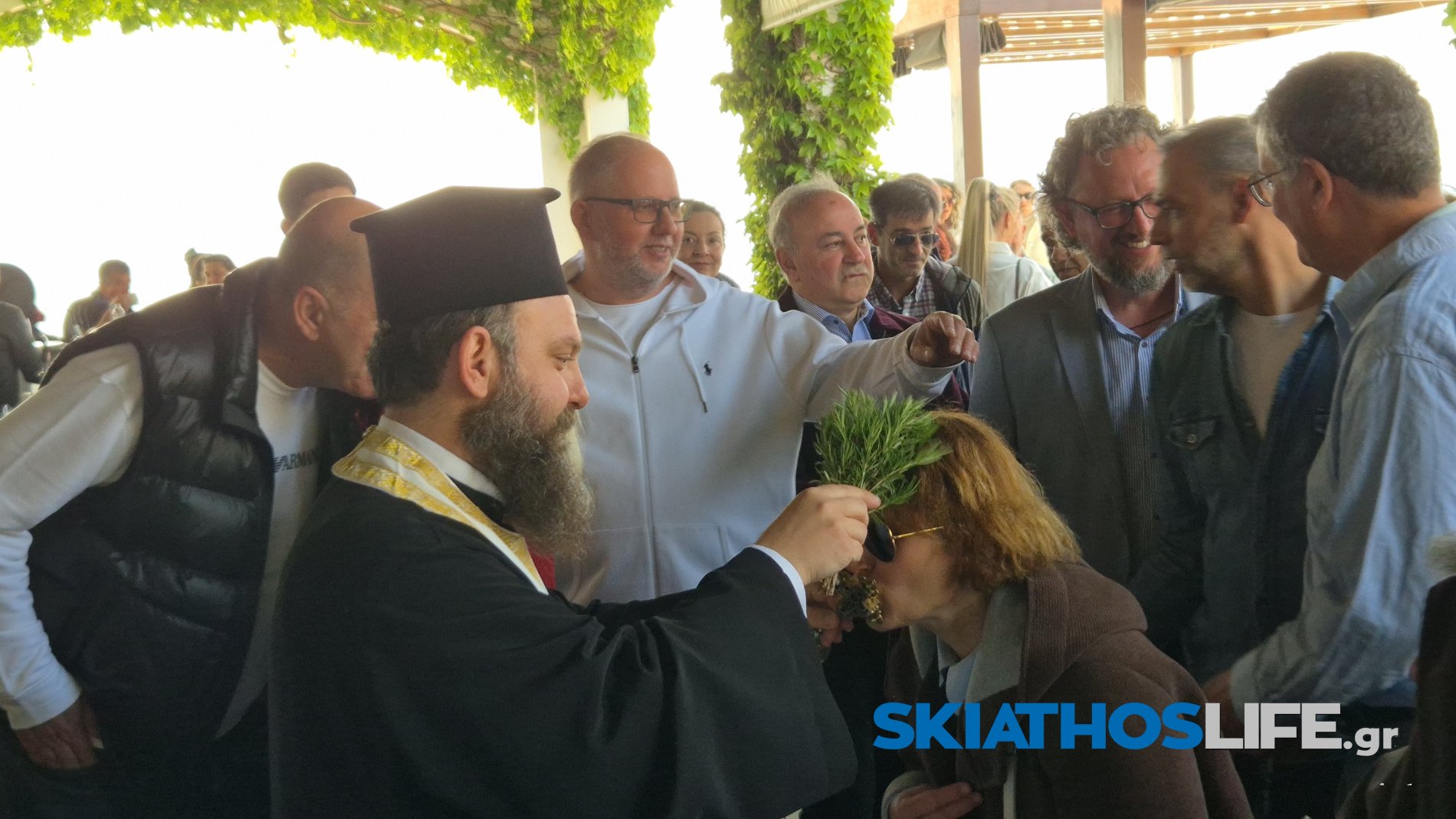Τον αγιασμό τέλεσαν και οι τέσσερις ιερείς του νησιού, προσδίδοντας ιδιαίτερη κατάνυξη και σημασία στην έναρξη μιας ακόμη δυναμικής χρονιάς για τον τουρισμό της Σκιάθου.