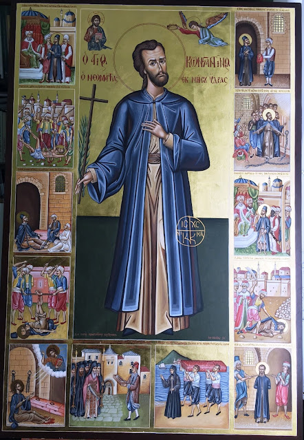 Ο Άγιος Κωνσταντίνος ενισχύεται ακόμη περισσότερο στο μαρτύριο, κοινωνώντας συχνά των Αχράντων Μυστηρίων, κρυφά στην φυλακή.